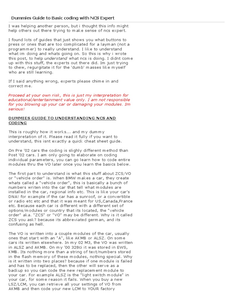 Dummies Guide To Basic Coding With Ncs Expert Computer File